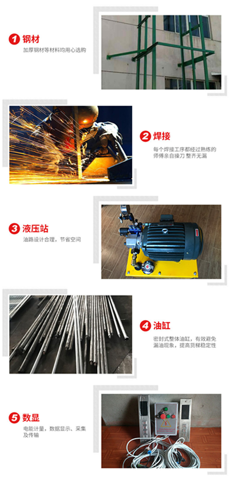室外升降機(jī)(導(dǎo)軌式升降機(jī))也稱導(dǎo)軌式升降平臺(tái),屬于固定式升降平臺(tái)可根據(jù)現(xiàn)場(chǎng)環(huán)境定做使用;層門可貫通,廠房?jī)?nèi)外可相互戳開,方便、節(jié)省空間;特別適合2-3層鋼結(jié)構(gòu)廠房,內(nèi)外部均可使用.一般載重噸位0.5-5噸,升降高度1-15米??梢愿鶕?jù)客戶要求設(shè)計(jì)定做定做。