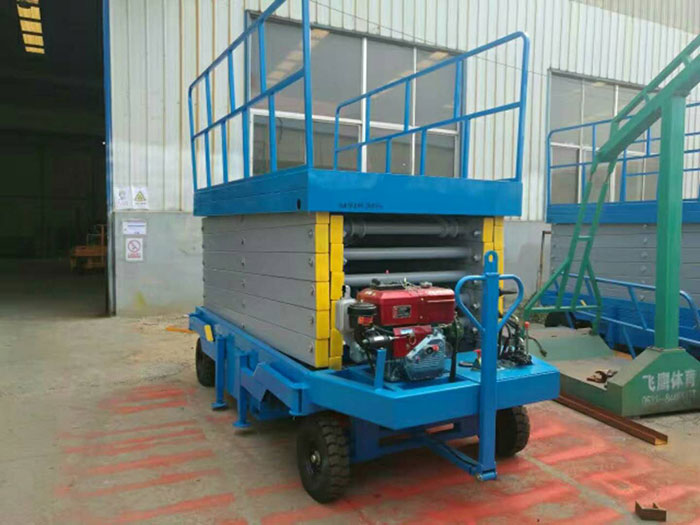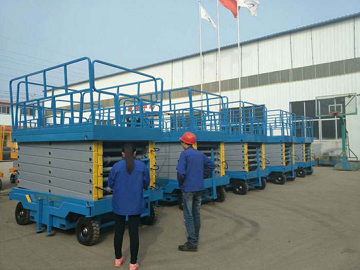 移動剪叉升降機(jī)是用途廣泛的高空作業(yè)專用設(shè)備。它的剪叉機(jī)械結(jié)構(gòu),使升降臺起升有較高的穩(wěn)定性,寬大的作業(yè)平臺和較高的承載能力,使高空作業(yè)范圍更大、并適合多人同時作業(yè)。升降動力分為220V或380V電源,柴油機(jī),或電瓶動力源,特殊環(huán)境也可采用防爆泵站及防爆電器。升高4—22米,載重0.3—3噸。采用意大利和國產(chǎn)液壓泵站,臺面使用防滑絕緣扣板,具有防滑,絕緣、安全,請放心使用。它使高空作業(yè)效率更高,安全更保障。 |